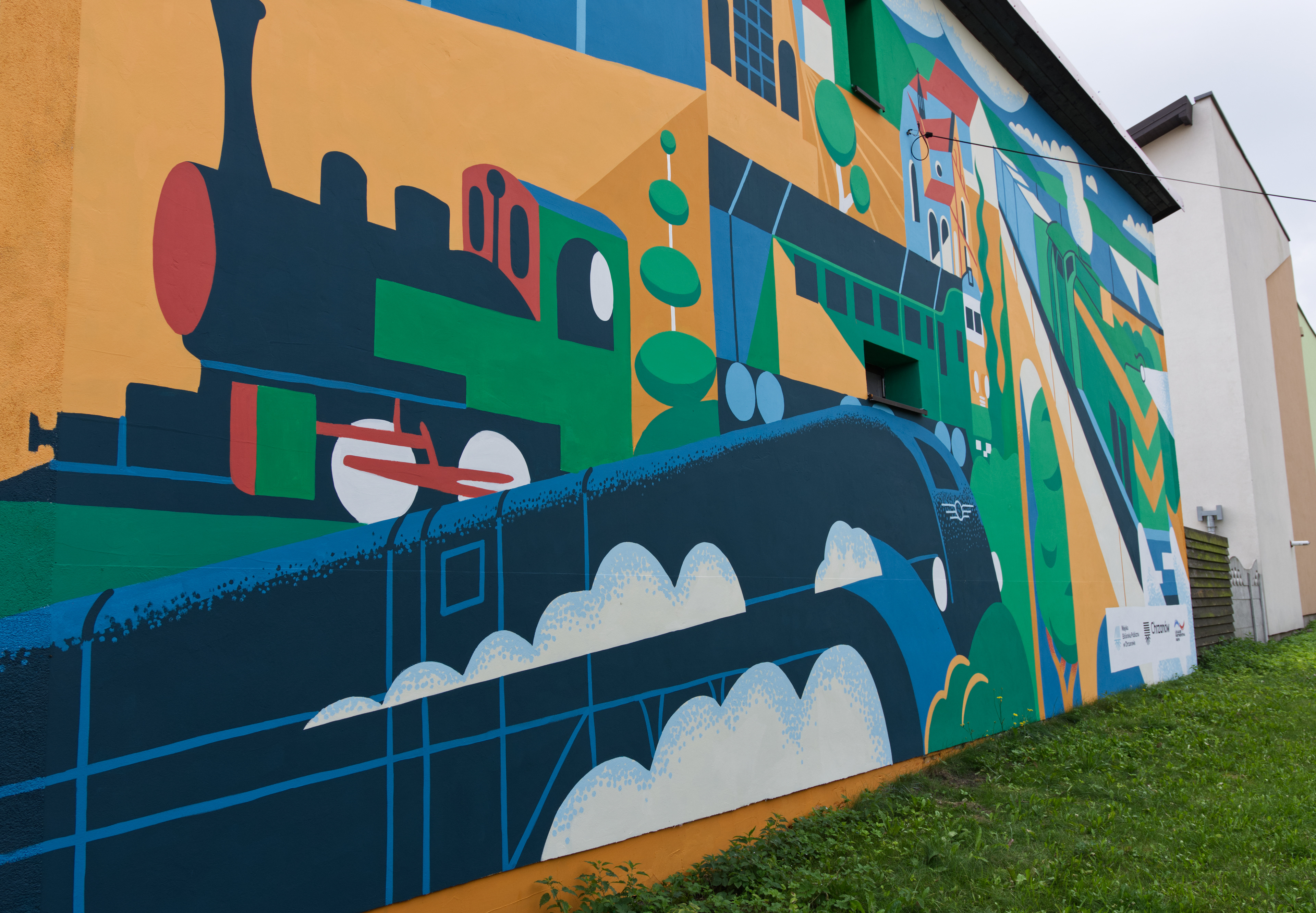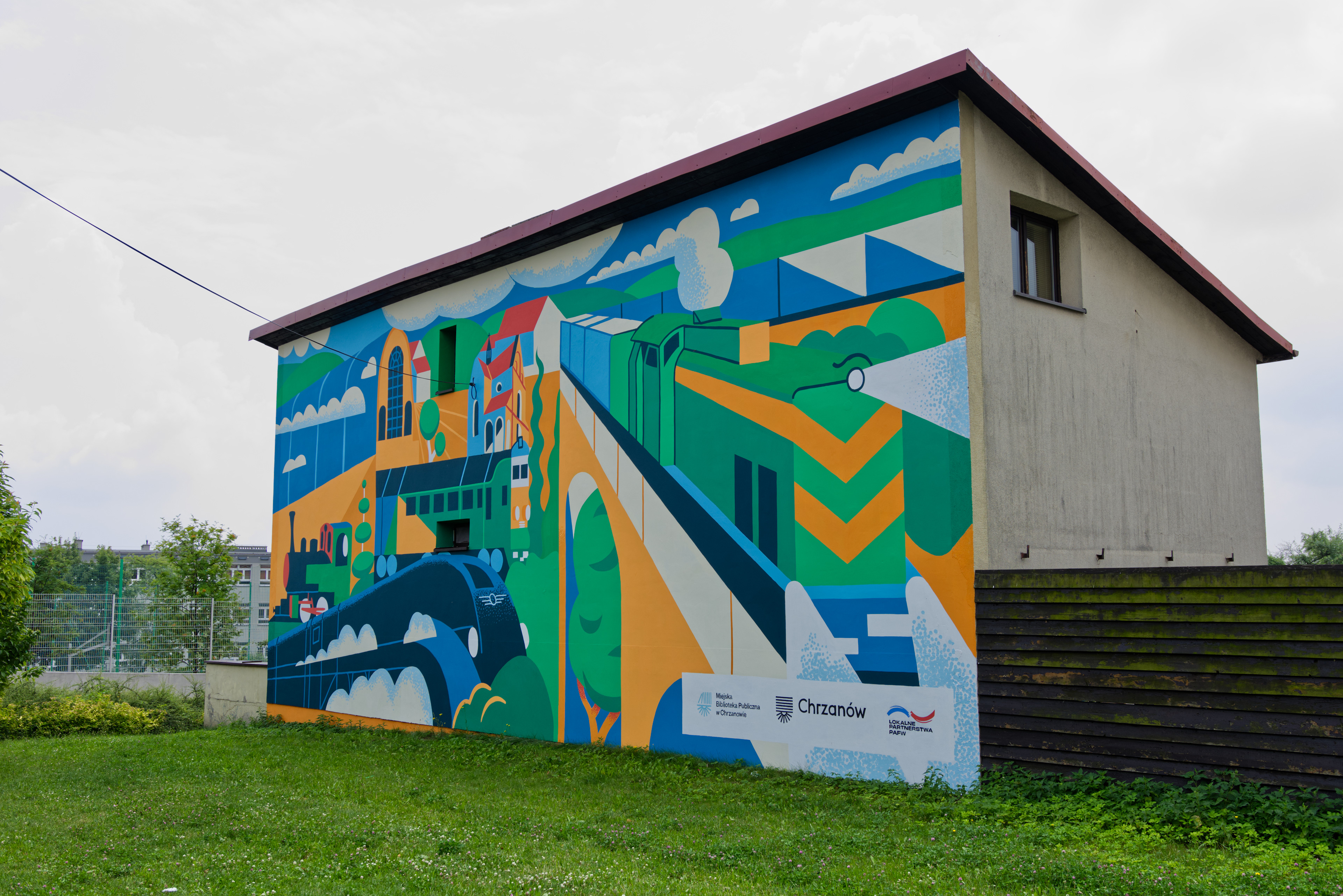 Mural for public library in Chrzanów that commemorates train factory
